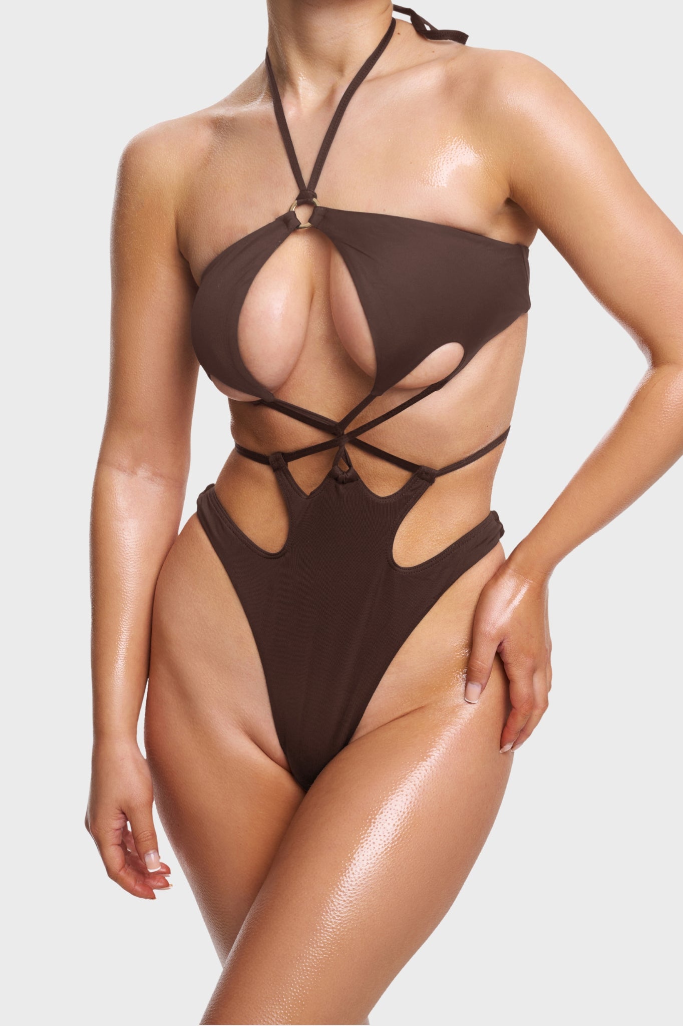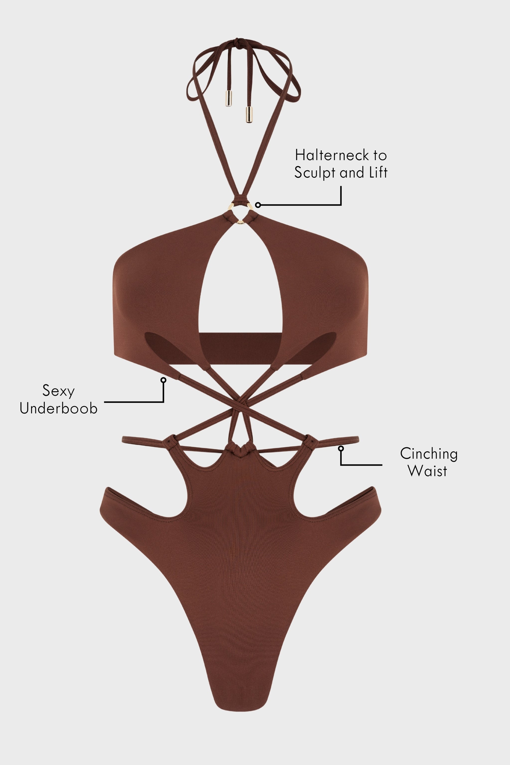 This piece is all about balance: the halterneck and high-leg cut sculpt and elongate your silhouette, while the sexy underboob detail and subtle cinching create the ultimate “boob job” effect — lifting and enhancing exactly where you want. The seamless finish and buttery-soft double lining ensure it feels as luxurious as it looks — no fuss, no discomfort, just second-skin perfection you can move in.